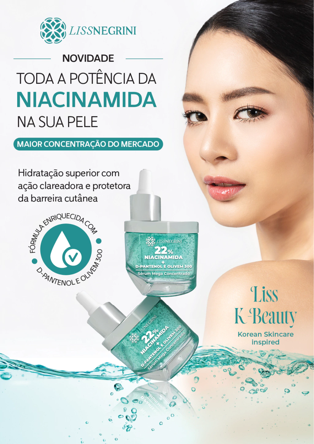 Sérum Mega Concentrado Liss Negrini K-Beauty com Niacinamida 22% - Tratamento intensivo para uma pele uniforme, luminosa e saudável